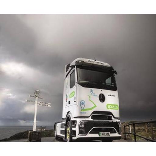 Mercedes-Benz Trucks has become the first manufacturer to drive an electric HGV from John o’ Groats to Land’s End, completing the 1,378km (854-mile) journey in just over 24 hours using its new eActros 600.